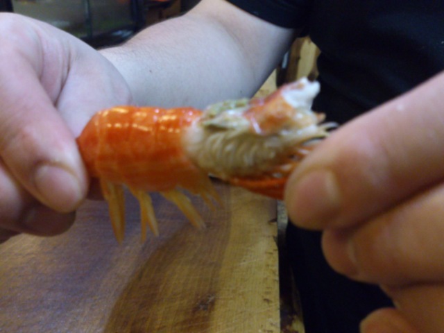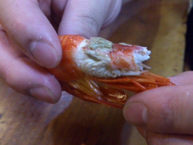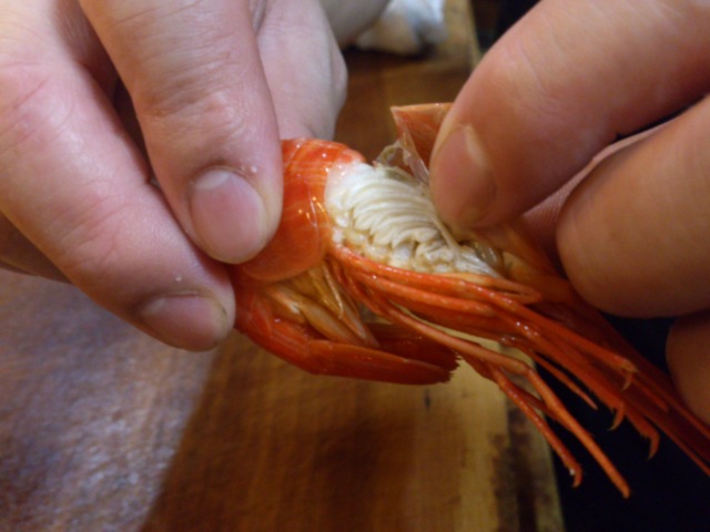 北海しまえびの食べ方①頭の殻だけを写真のようにとります。