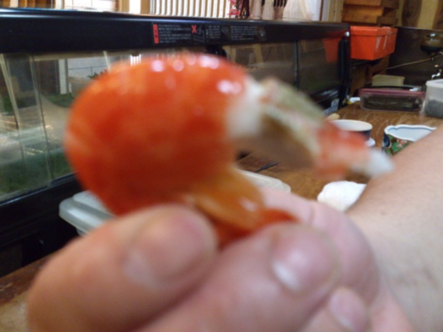 北海しまえびの食べ方⑥頭の方はお好みで白いところは食べられます。